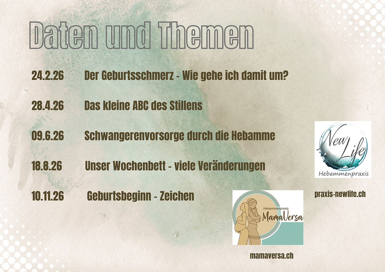 Anwesend sind jeweils wir drei Hebammen – Erika, Annatina und Anita – damit Ihr uns persönlich kennenlernen könnt.