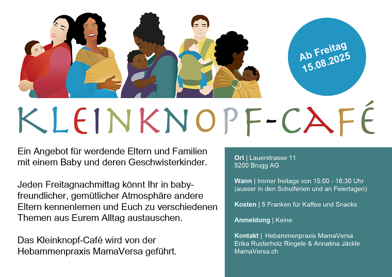 Jeden Freitagnachmittag von 15:00 bis 16:30 Uhr sind alle jungen Familien herzlich eingeladen, an der Laurstrasse 11 in Brugg vorbeizuschauen. Auch Geschwisterkinder sind willkommen – dafür steht ein liebevoll eingerichtetes Spielzimmer bereit, in dem sich die Kleinen beschäftigen können, während die Erwachsenen sich austauschen. Das Kleinknopf-Café wird abwechselnd von Erika oder Annatina geführt.
